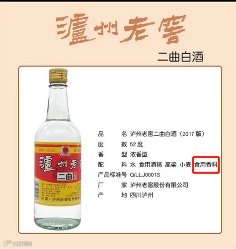 泸州老窖、剑南春、老村长也有部分酒不能再称为白酒。比如泸州老窖二曲、52度的老窖醇香、老窖世家喜庆装等它们的产品标签配料表中均标有食用香料成分。