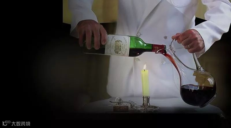 在传统的侍酒服务中,开瓶时需要在酒瓶下方点燃一根蜡烛,选择合适透亮的角度,在烛光前缓缓将酒液倒入醒酒器中,直到看见沉淀流动到瓶颈处停止。