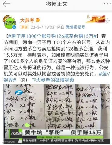 对此,北京康达(郑州)律师事务所高级合伙人殷永刚表示,使用他人身份证从事与当事人无关的活动,已经涉嫌冒用他人身份证,可以进行治安拘留,涉嫌犯罪的可刑事拘留。不过,冒用他人身份证就可以轻松抢得平价茅台酒,一是说明茅台专卖店制订的游戏规则有漏洞,二是说明工作人员对抢购茅台者的身份审查不够严格。