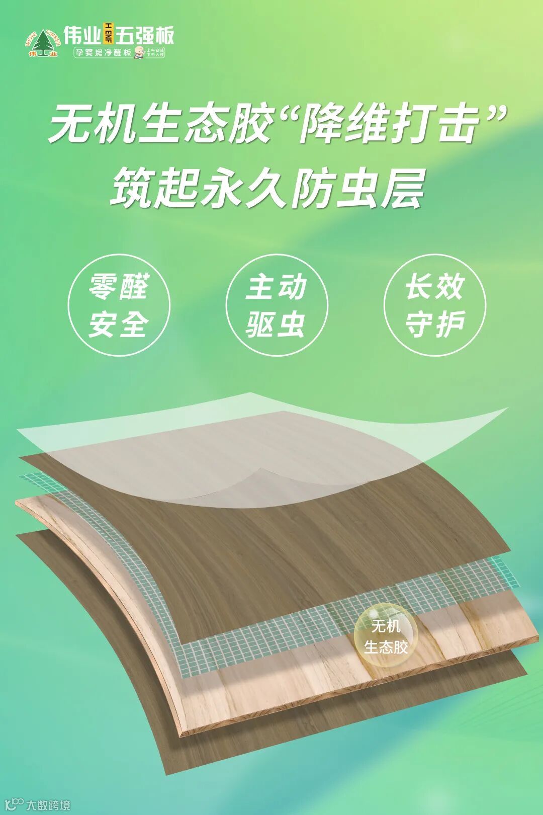 伟业五强板另辟蹊径,用独家无机生态胶粘合技术实现物理防虫: