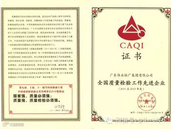 质量是伟业三大核心竞争之一,是伟业的生命线,是伟业维系品牌和企业形象的基础。多年来,伟业坚持“科技兴伟业,质量创名牌”的质量方针,在生产中严格按照ISO9001质量管理体系和ISO14001:2004环境管理体系的标准,依托完善的ERP管理系统和先进的卓越绩效管理体系、6S现场管理标准。监控质量的同时,结合市场需求和客户需求,充分调动公司研发力量,自主研发节能门窗、幕墙,铝木复合门窗、建筑铝模板、高端工业材等多个系列的新产品,其中荣获”广东省名牌产品“的建筑铝模板和高品质的铝木复合门窗投入市场后,更是受到广大客商的追捧。伟业因此被相关专业人士称为铝材行业风气的开拓者,荣获中国质量检验协会授予的“全国质量检验工作先进企业”称号,日益树立起伟业在节能型材领域的领导地位。