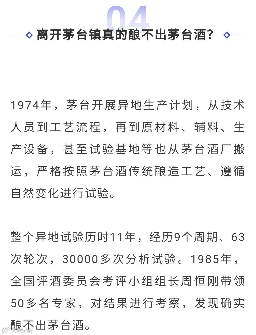 关于茅台酒度数,有一个经典实验:53.94ml的纯酒精加49.83ml的水,混合物体积不是103.77ml而是100ml,神奇地减少了3.77ml。即:53.94 + 49.83 = 100,而≠103.77。