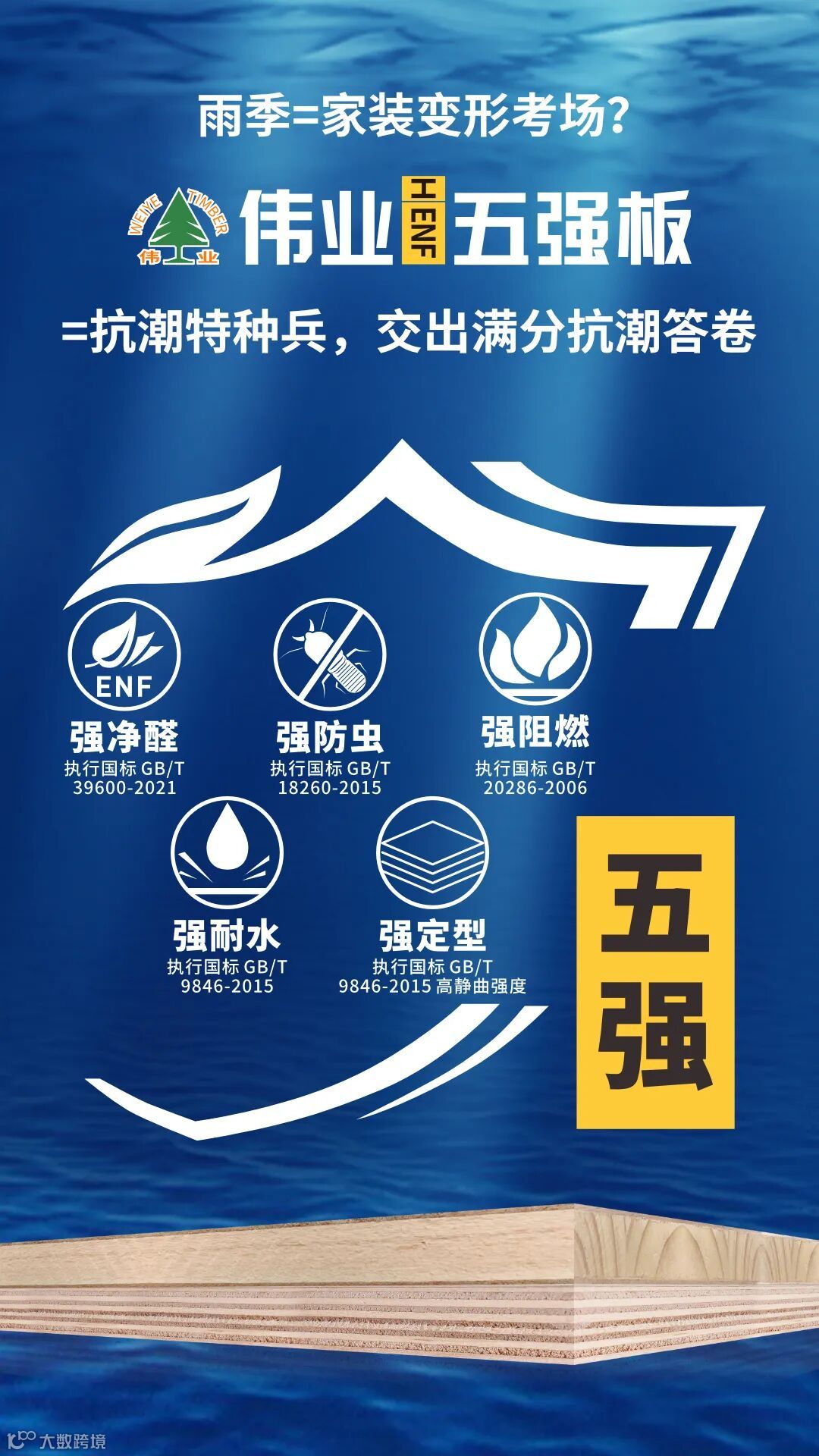 伟业牌深耕板材领域30年,始终以 “硬核实力” 守护千万家庭。这个雨季,别再让潮湿毁掉你的 “理想家”!选择伟业五强板,把每一个阴雨连绵的日子,都过成 “稳稳的小确幸”~