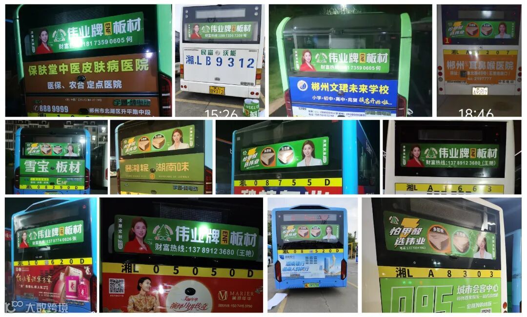 在郴州市繁忙的街道上,一辆辆穿梭往来的公交车上,伟业牌ENF板材的广告设计新颖,尤为亮眼的是采用了郴州地区总经销商王总的形象作为代言,格外引人注目。