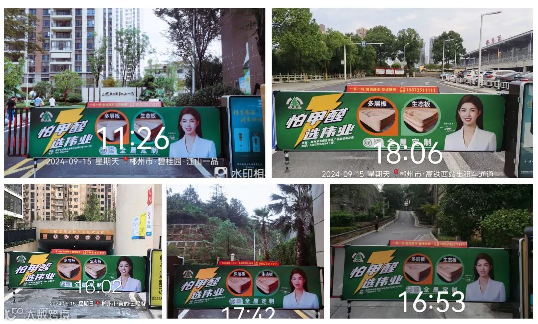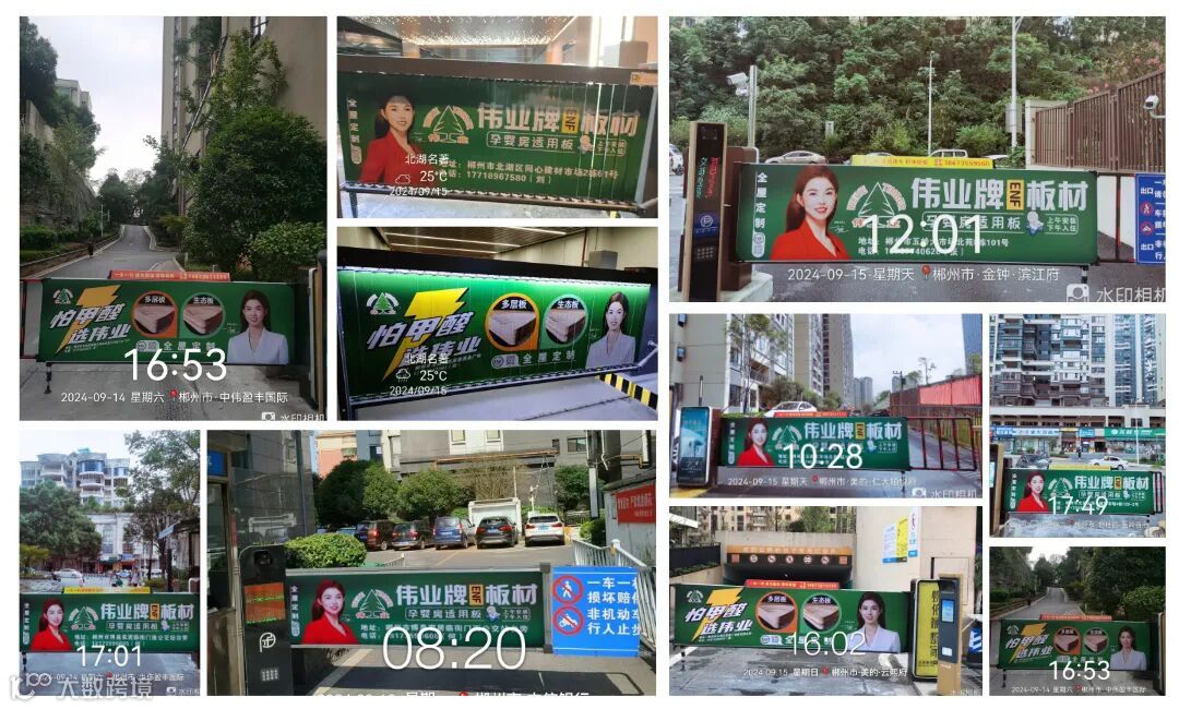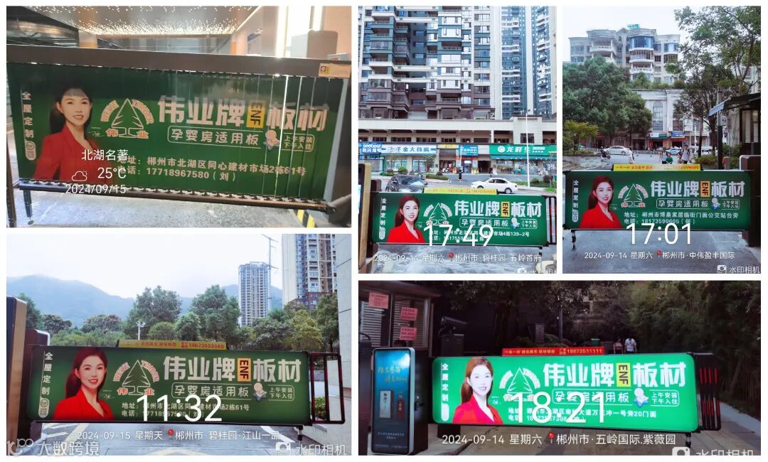 与此同时,伟业牌ENF板材也将宣传阵地延伸到了居民生活的“最后一公里”——小区道闸。在郴州市众多中高端住宅小区的出入口,一幅幅精美的道闸广告成为了业主们进出家园时必经的风景线。