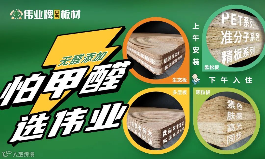 产品上,伟业牌ENF板材从生态板到五强功能板,到欧松板,再阻燃板;环保上,伟业牌ENF板材从E0级到ENF级环保标准,一直在推动产品的性能升级、环保升级、功能升级、花色升级,坚持为不同消费群体提供个性化、差异化家装用板需求。