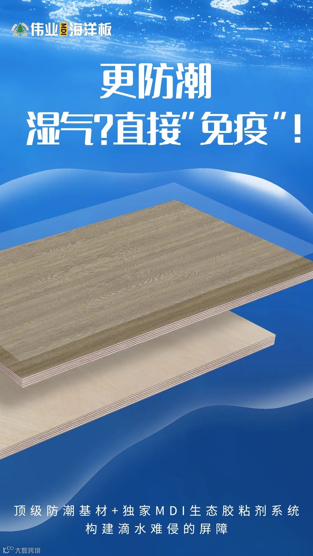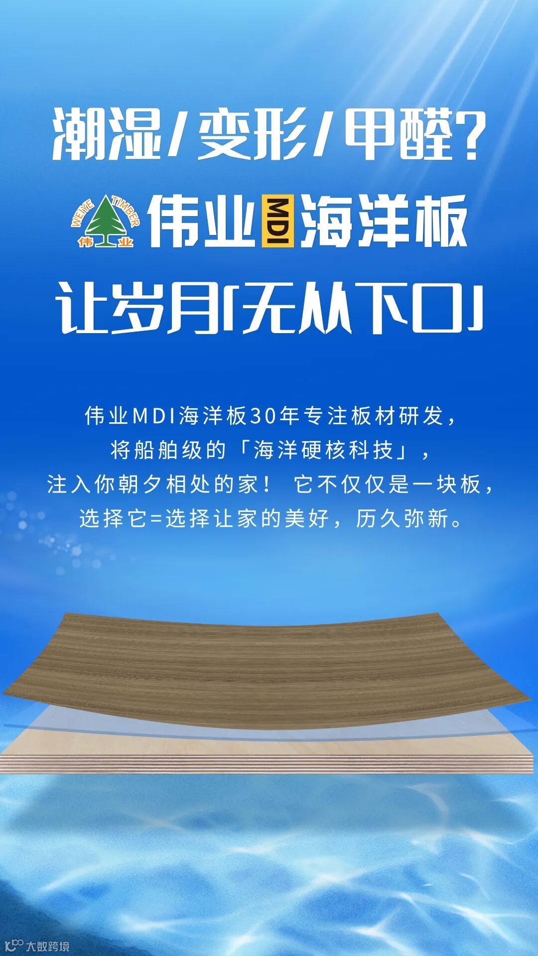 伟业MDI海洋板30年专注板材研发,将船舶级的「海洋硬核科技」,注入你朝夕相处的家! 它不仅仅是一块板,选择它=选择让家的美好,历久弥新。