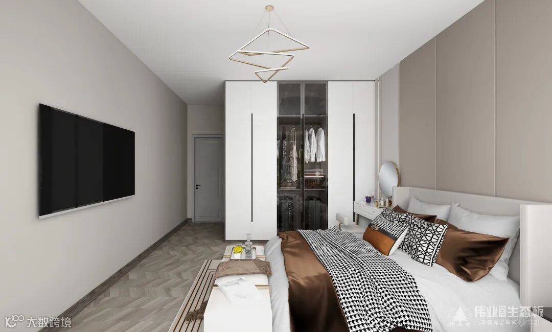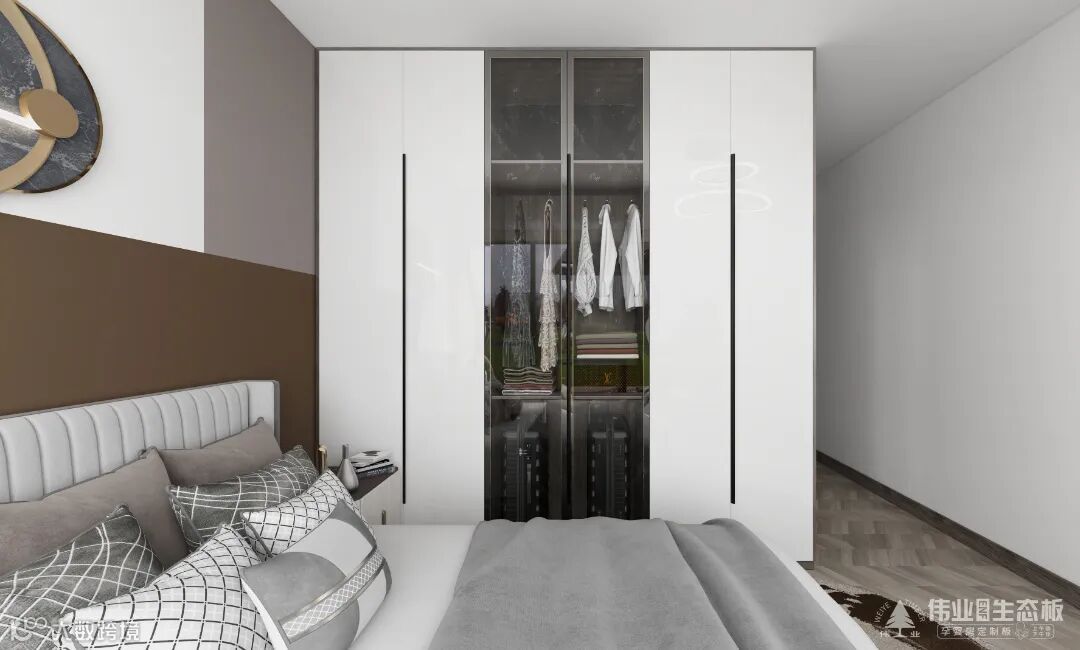 谁说长辈房只能刻板传统?房间复制主卧的衣柜样式,整体空间设计减去复杂设计,融入现代的审美元素,让日常睡卧之居,更显宁静优雅。