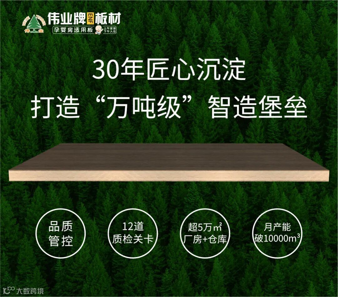 同时,伟业牌板材实现严格的品质管控,从原木筛选到成品出厂,12道质检关卡,不合格板材直接回炉再造,确保每张板材零瑕疵交付。并且具有良好的产能保障,具备超5万㎡厂房+仓库,月产能突破10000m³,可满足大型工程批量交付需求。