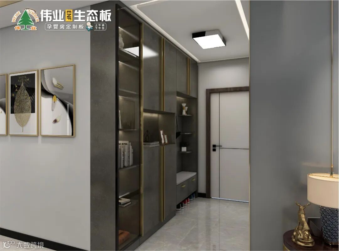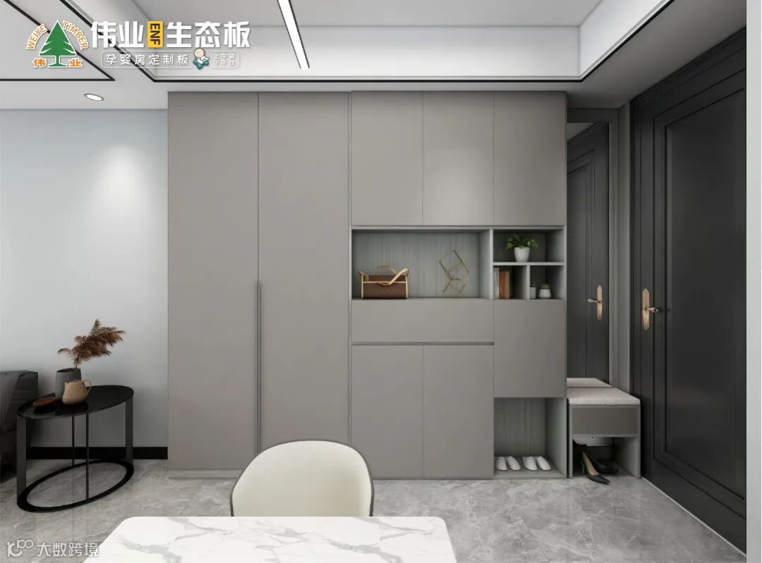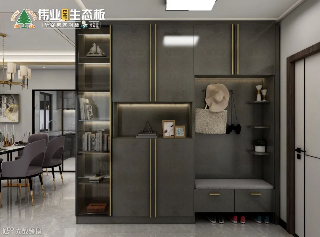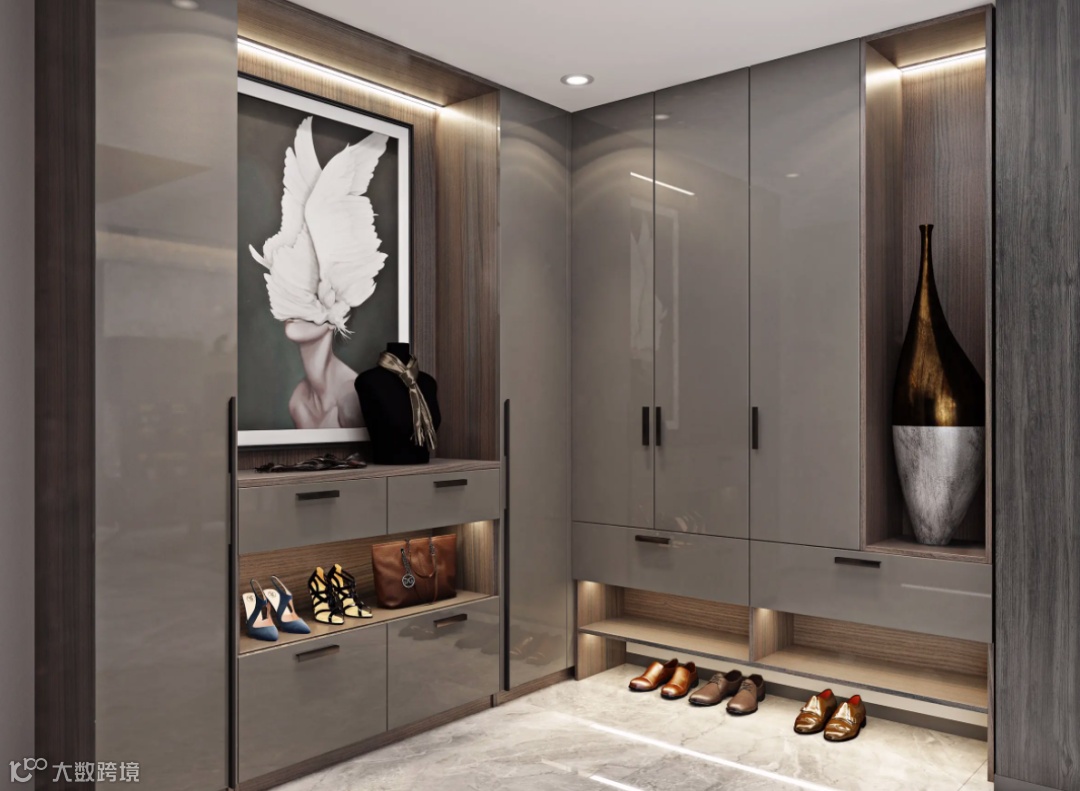 轻奢风格的入户空间,用高级灰做定制柜,低饱和度,和谐悦目,给人平静柔和的高品质感,不会在空间中过于抢眼,也不会暗淡无味。