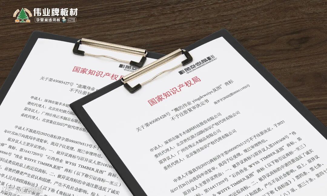 2、“鹰的伟业yingdeweiye及图”、“庞鹰伟业pangyingweiye及图”指定使用于第19类“阻燃胶合板,和伟业商标属于同类商品,共存市场,公众容易混淆误认;
