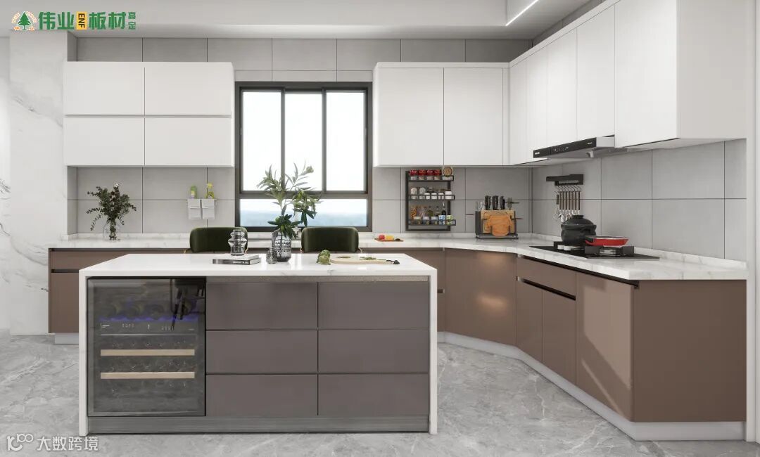开放式的厨房中,橱柜+岛台是很多大宅的标配。L型的橱柜布局,洗-切-炒的动线合理流畅,满足日常使用需求。岛台可以充当料理台、就餐区、吧台等,让烹饪工作更加井然有序。