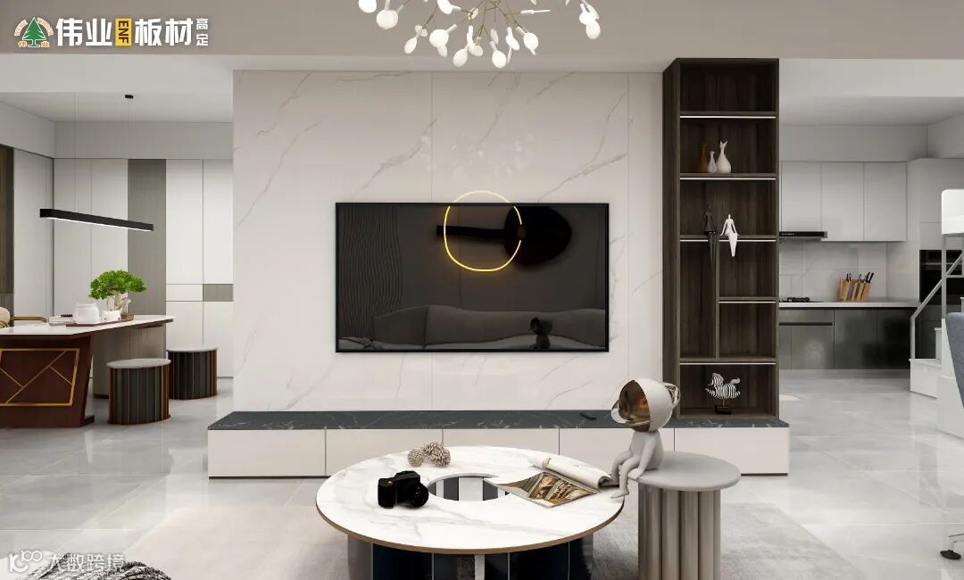 现代风的客厅,电视墙运用了当下年轻人喜欢的岩纹元素,电视柜简约的造型线条,从容地演绎着现代的木作诱惑,配以创意的灯光,呈现着不凡的气度。