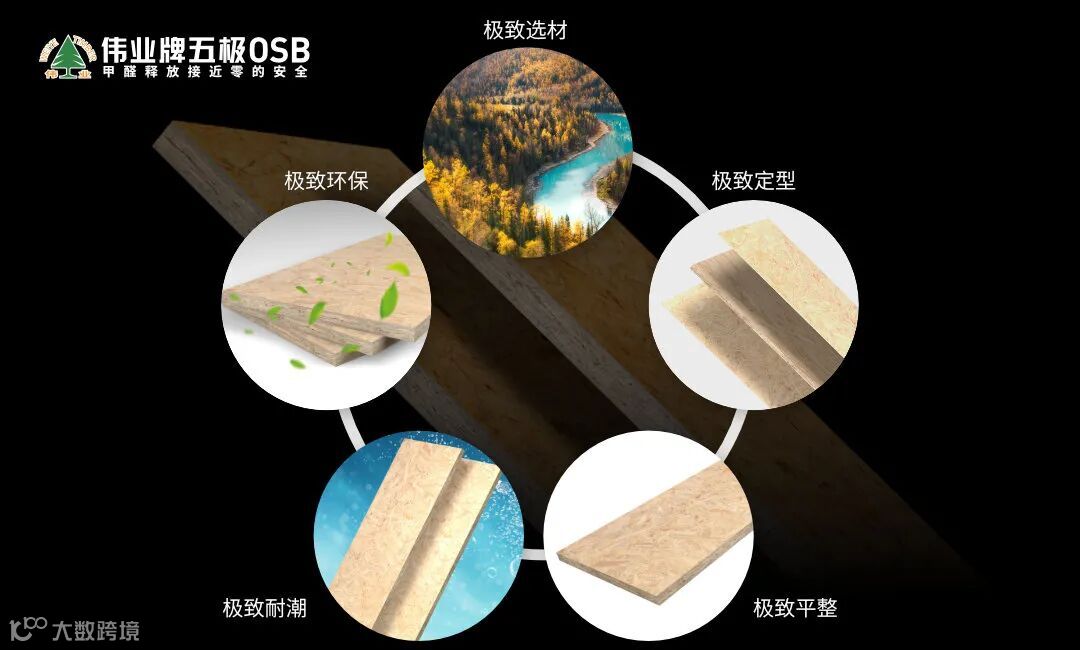 伟业牌五极OSB极致选材、极致环保、极致定型、极致耐潮、极致平整,以强大的产品优势,深受欢迎,大量应用到建筑行业、家装行业、包装行业等领域中,成为建材市场“最靓的仔”!