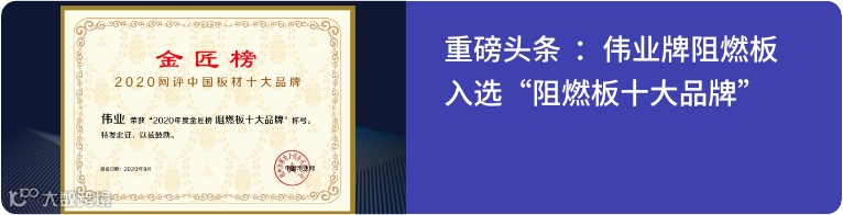 此次荣耀加冕“阻燃板十大品牌”,将成为伟业牌阻燃板继续砥砺前行的不竭动力,不忘初心,再接再厉,竭力为用户提供更优质的阻燃板产品,为中国绿色建筑事业贡献更多力量。