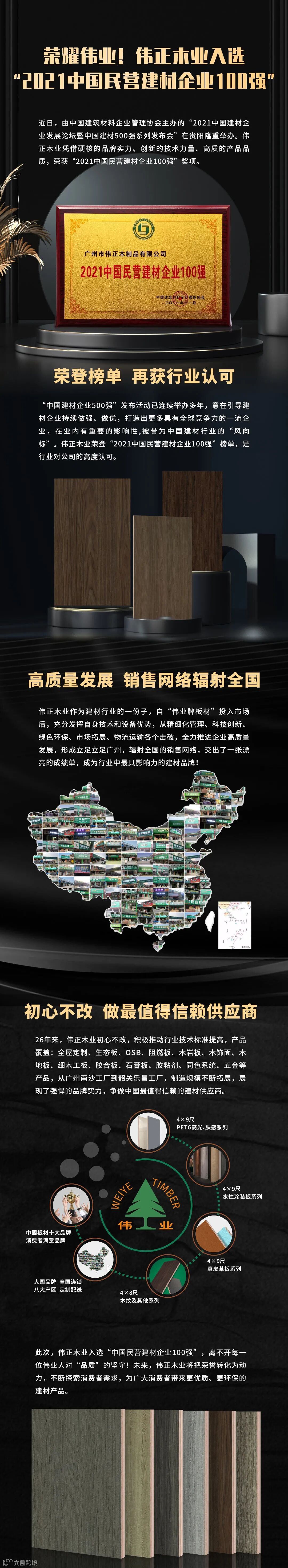 荣耀伟业!伟正木业入选“2021中国民营建材企业100强”