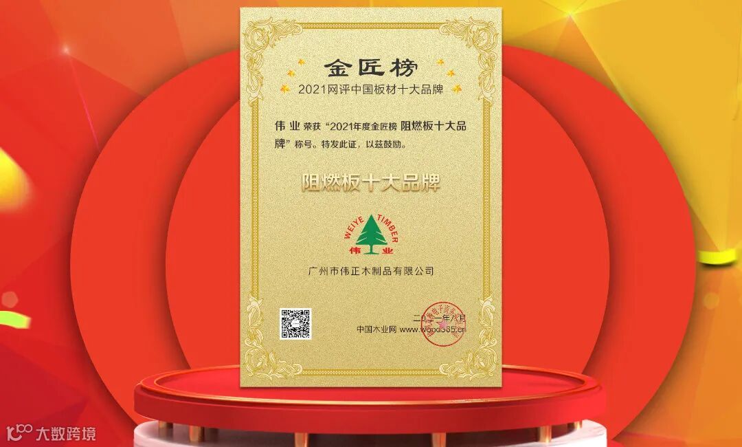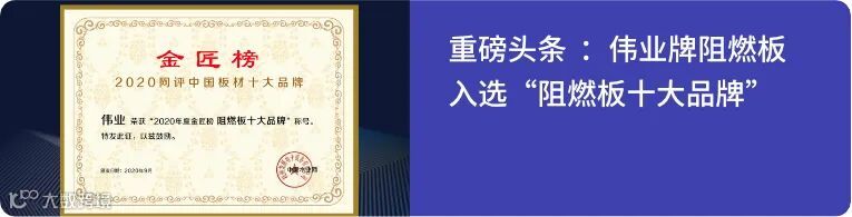 近日,在中国木业网主办的“2021年金匠榜”评选活动中,伟业牌阻燃板凭借创新的品质实力、强大的品牌影响力,再获认可,入选2021年“阻燃板十大品牌”!