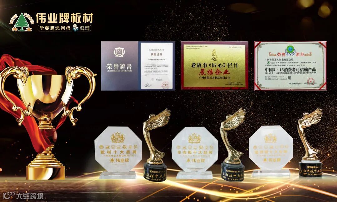 伟业牌板材成立至今,依托专业、环保、材料、渠道、服务五大品牌优势,成为最具影响力的全屋定制专业板材服务商,先后获得了“粤港澳大湾区品牌100强”、“中央媒体《匠心》栏目播出品牌”、“中国板材十大品牌”、“中国生态板十大品牌”、“中国阻燃板十大品牌”、“中国十大消费者信赖板材品牌”等殊荣。