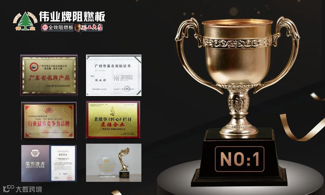 伟业牌阻燃板坚持用“质量”做口碑,以“诚信”做服务,先后荣获:广东省名牌产品、广州市著名商标、中国阻燃板十大品牌、粤港澳大湾区品牌100强、CCTV《匠心》栏目展播企业、行业最具竞争力品牌、ISO9001质量管理体系认证、入选广州市政府采购目录装饰板材、国家生态建材示范展示产品、广州市质量管理协会成员单位等荣誉。