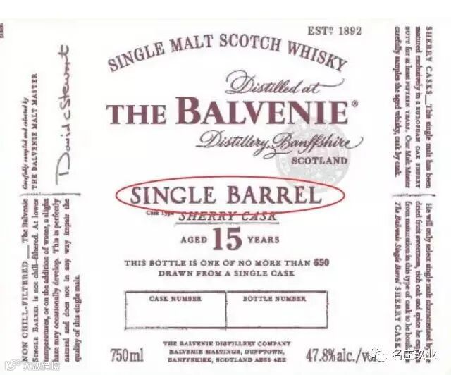 单桶威士忌(Single Cask / Single Barrel):表示瓶中的威士忌仅仅来自一个桶。同一年份不同桶的威士忌都有不一样的风味,为了稳定酒厂的风味,满足大众口感,使其达到最好的平衡,就算是单一麦芽威士忌也通常会采用不同桶的威士忌来相互调和。当酒厂有非常得意的出品时,才会考虑用单桶的威士忌来装瓶。单桶威士忌有时候会标注桶号。