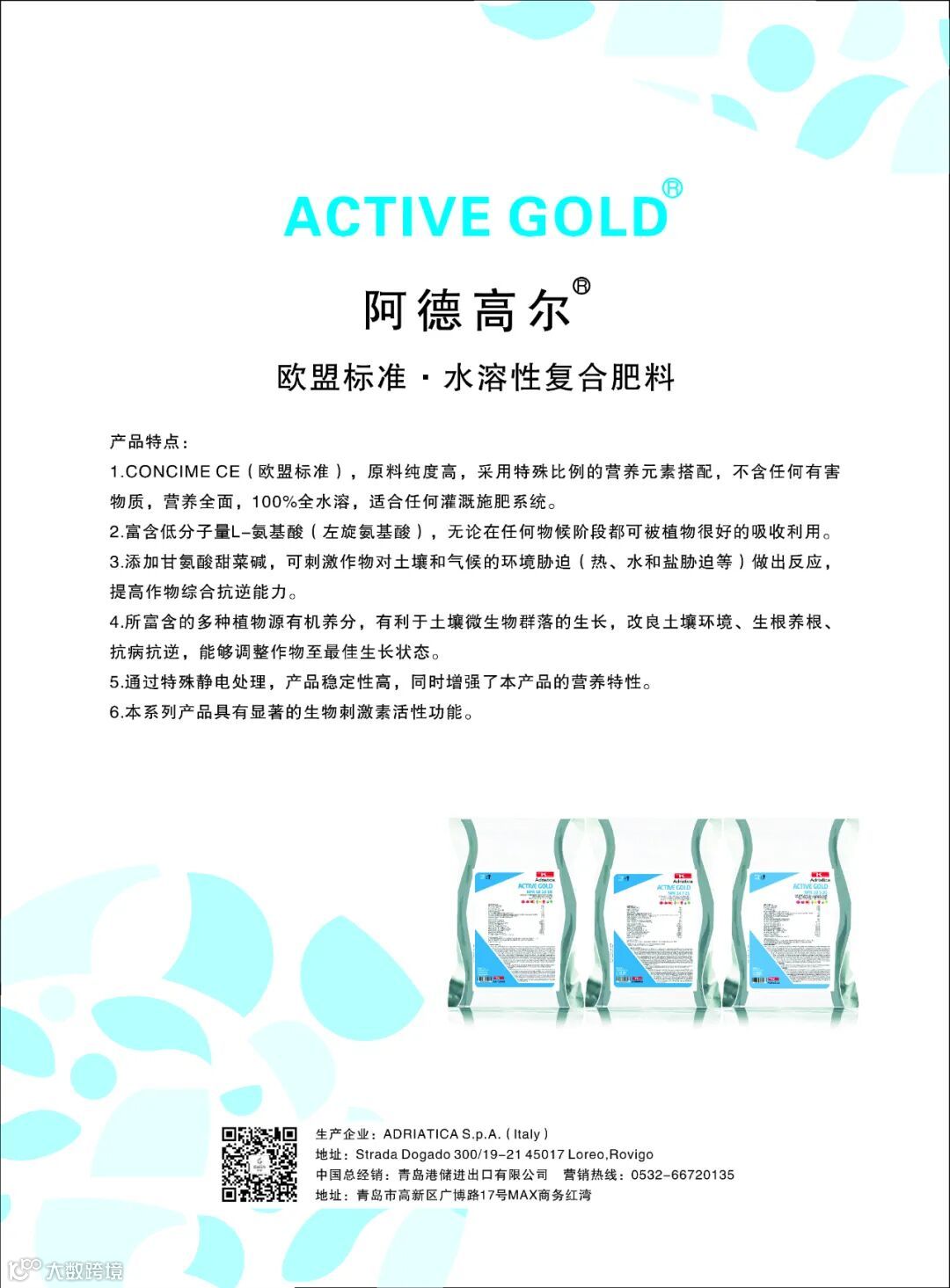 产品名称:ACTIVE GOLD®阿德高尔 原装进口大量元素水溶肥料