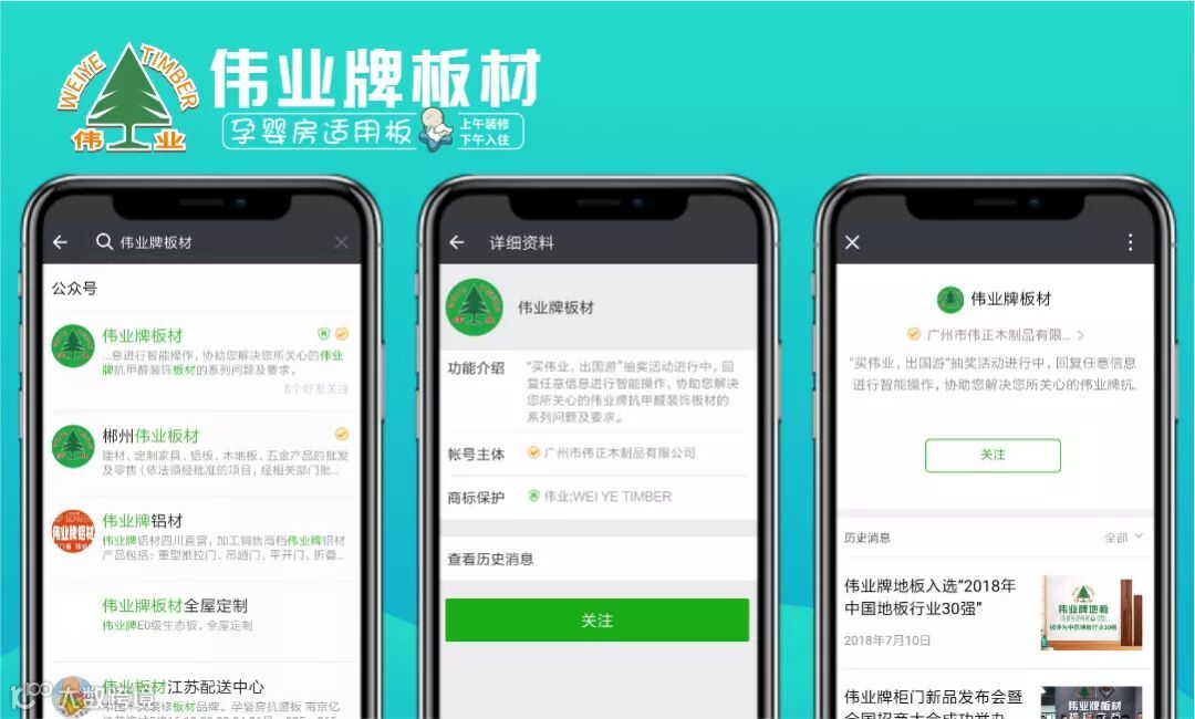 1.微信搜索公众号“伟业牌板材”并关注;