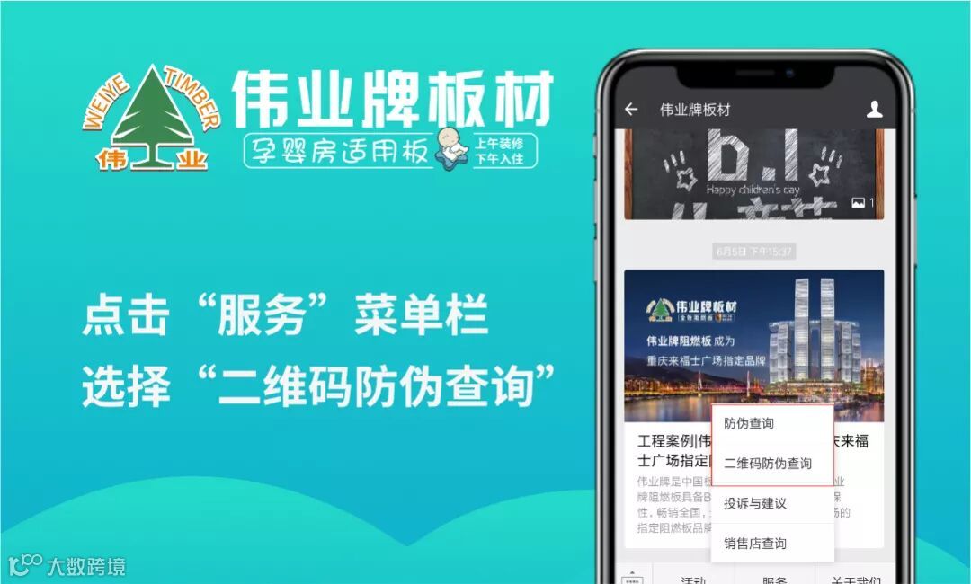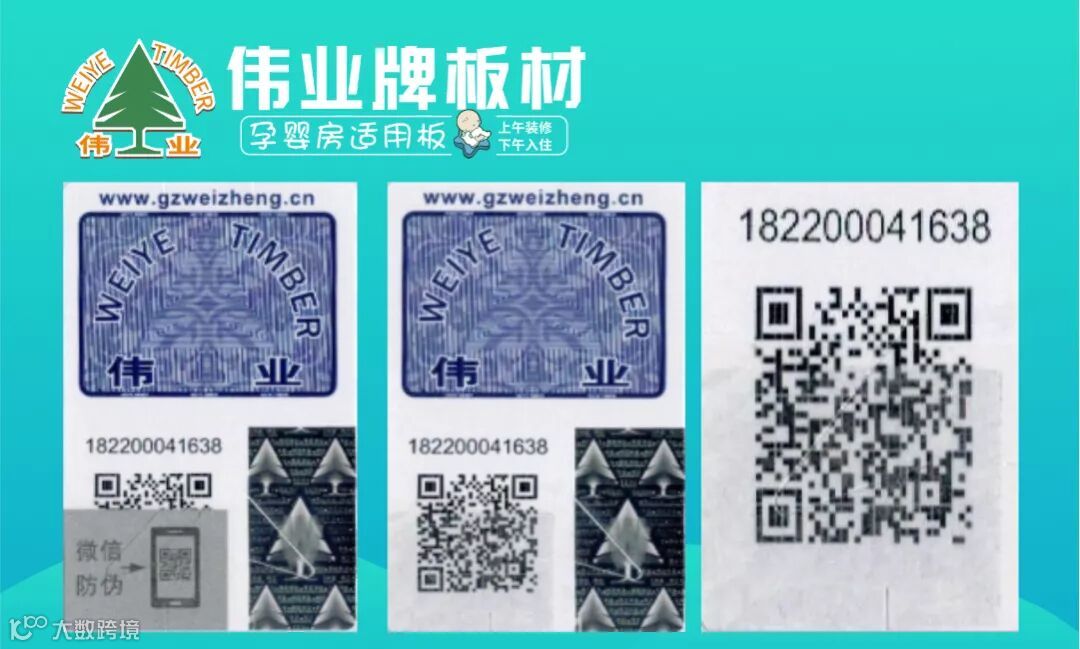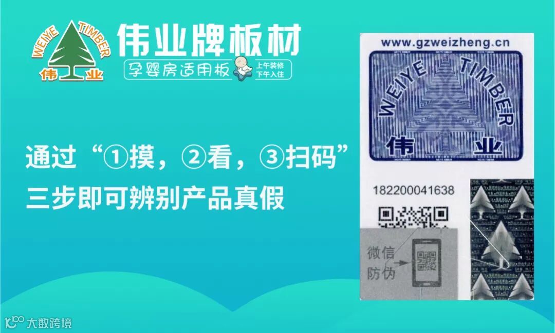 各位合作伙伴、消费者朋友大家好,伟正木制品有限公司旗下“伟业牌”板材全新推出二维码防伪标签,以蓝标为例,通过“①摸,②看,③扫码”三步即可辨别产品真假。