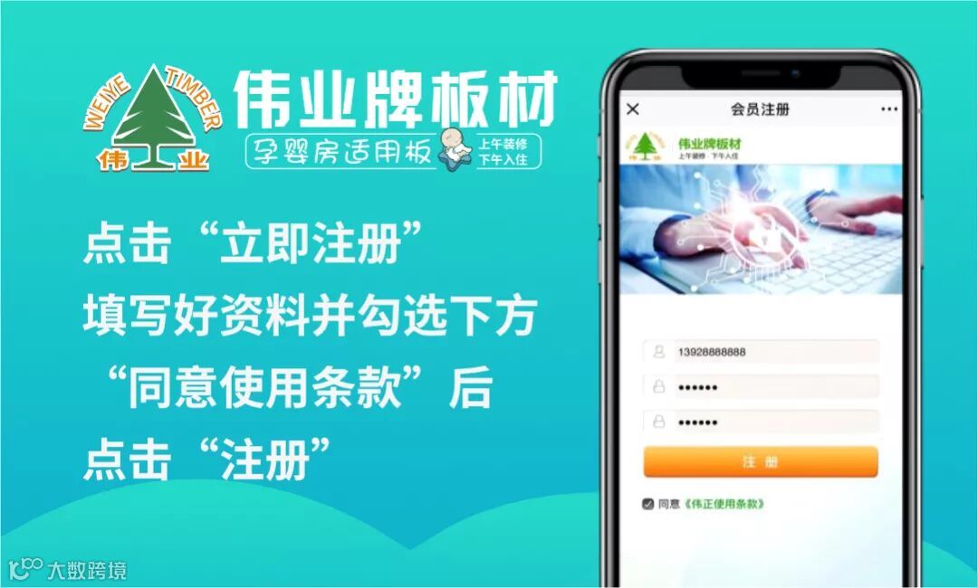 2.点击“立即注册”,填写好资料并勾选下方“同意使用条款”后点击“注册”,由于电话号码作为中奖后的重要联系信息,建议填写真实的电话号码,方便兑奖时联系;