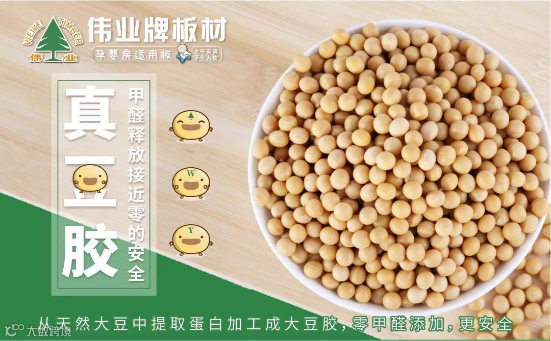 在人造板中,除了胶水中含有甲醛,木材本身也含有微量甲醛,为了制造更环保的板材,伟业牌板材以生态原木为制板基础,以植物大豆胶为核心竞争力,不断刷新产品环保新标准,所产大豆胶板材均以高环保、高质量著称,让消费者真正买得放心、用得安心。