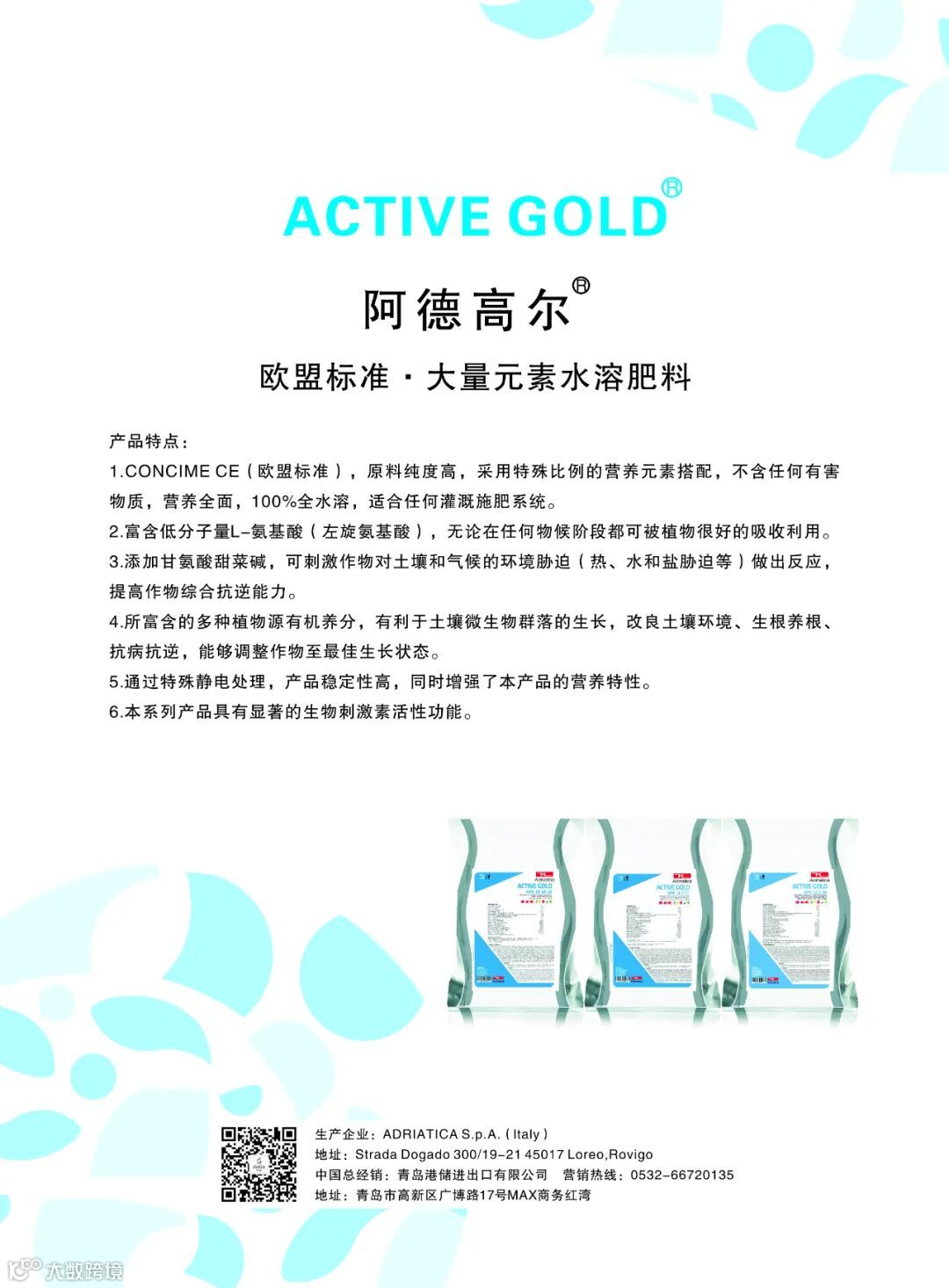 产品名称:ACTIVE GOLD®阿德高尔®原装进口大量元素水溶肥料