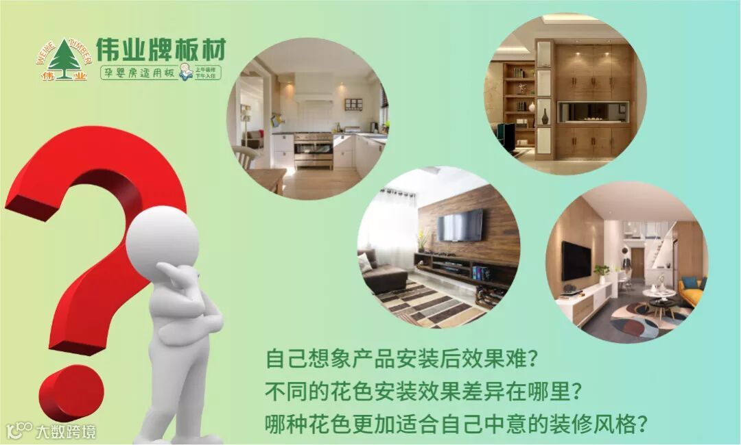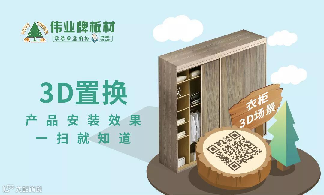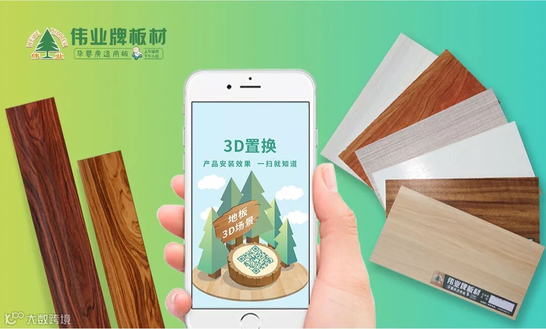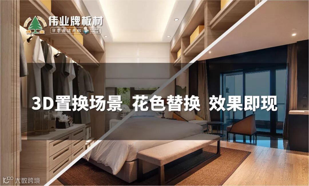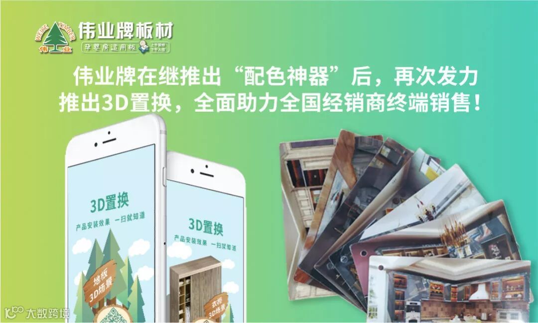 伟业牌板材推出3D置换,可以为经销商量身定做任何生态板花色的3D场景,让客户用微信即能体验产品安装效果,全面助力全国经销商终端销售!