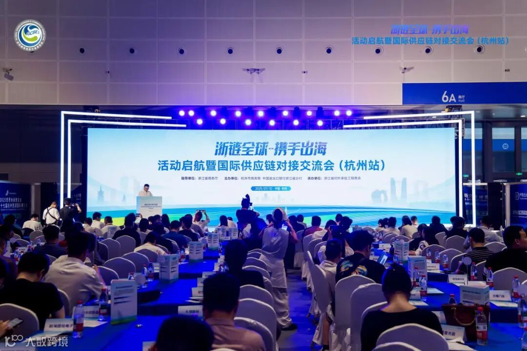 7月10日,由浙江省商务厅指导,杭州市商务局、进出口银行浙江省分行主办,浙江省对外承包工程商会承办的“浙链全球-携手出海”活动启航暨国际供应链对接交流会(杭州站)在杭州大会展中心圆满举办,来自政府部门、对外承包工程企业、外贸企业、金融机构共400余人参会。作为全省“浙链全球-携手出海”系列活动的首站,这场盛会以“链”为媒,聚政银企之力、汇产业之智,为浙江企业协同开拓国际市场按下加速键,奏响了外贸服务链协同出海的新乐章。