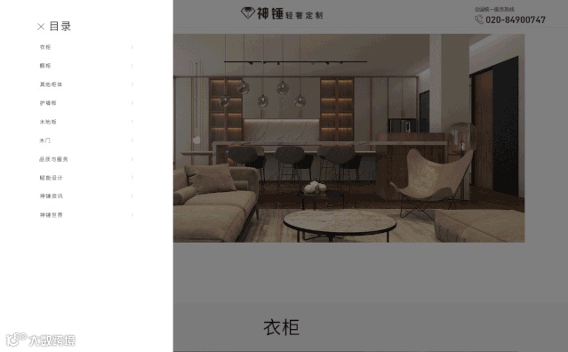 改版后,导航形式改成更简洁的目录形式,衣柜、橱柜、其他柜体、护墙板、木地板、木门,神锤产品应用场景一目了然,方便用户体验。各种花色效果图展示同步切换,方便易用。