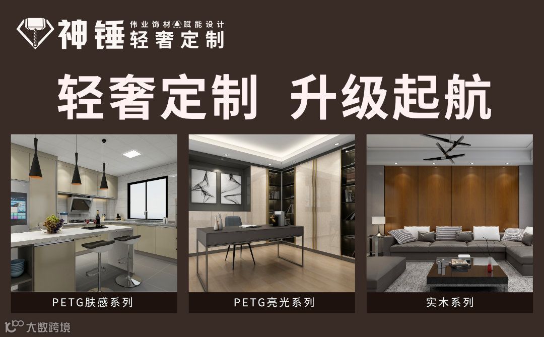 本次改版后,神锤轻奢定制产品再次升级,产品种类在木岩板系列基础上,增加了PETG肤感系列、PETG亮光系列、实木系列,为用户打造个性化空间提供更多元素。