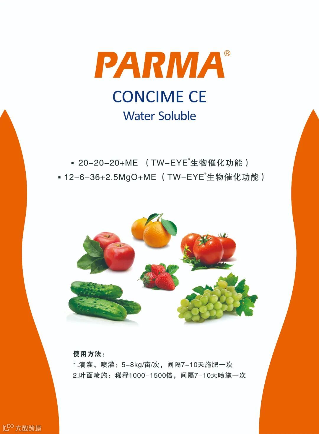 1.CONCIME CE(欧盟标准肥料)原料纯度高,不含任何有害物质、营养全面、100%全水溶,适合任何灌溉施肥系统。
