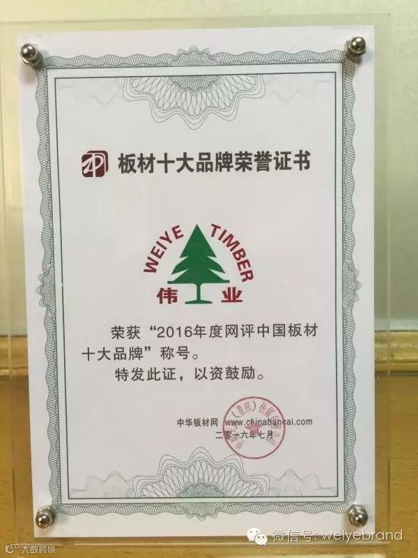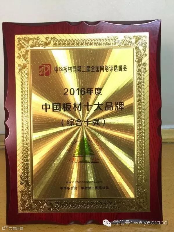 热烈祝贺伟业板材荣获“2016年度网评中国板材十大品牌”称号
