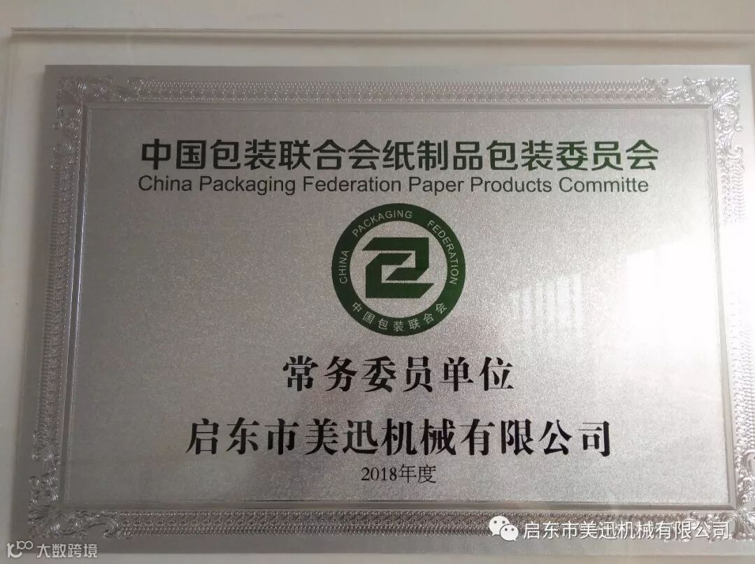 2018年我司正式加入中国包装联合会纸制品包装委员会常务委员单位
