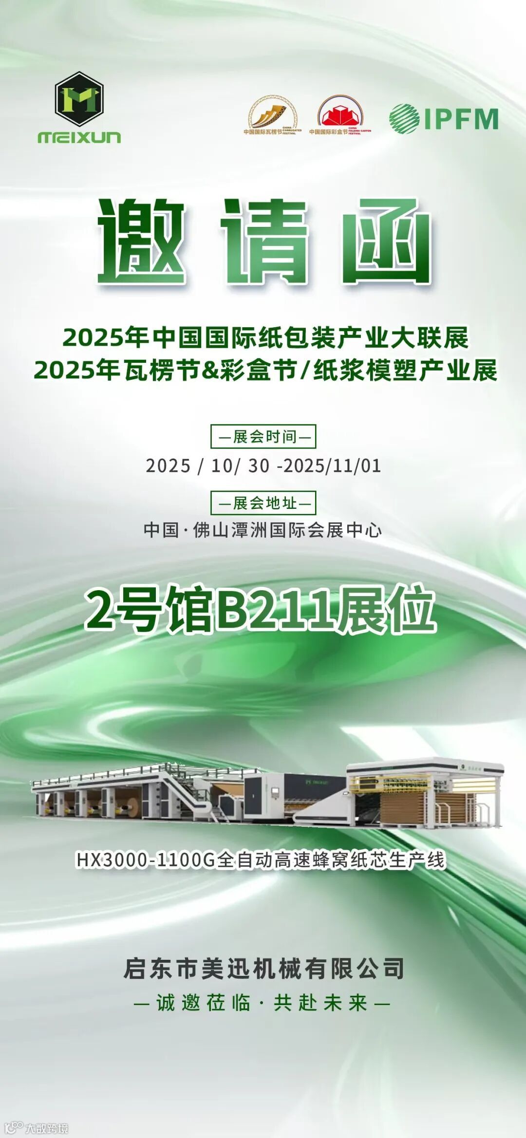 在即将举办的“2025中国国际瓦楞节&中国国际彩盒节”上,美迅机械将携全新一代蜂窝纸板生产装备震撼登场。此次展会期间,公司将重磅推出2500mm幅宽、速度高达120米/分钟的薄蜂窝纸板复合生产线,在性能与外观设计上实现全面升级,充分展现美迅机械在蜂窝纸板装备领域的领先实力与创新能力。