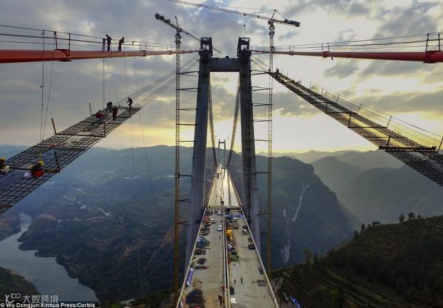 NO.4 矮寨大桥:位于湖南湘西矮寨镇境内,跨越山谷,德夯河流经谷底,桥面设计标高与地面高差达330米左右,全长1073.65m,悬索桥的主跨为1176m。该桥跨越矮寨大峡谷,主跨居世界第三、亚洲第一。