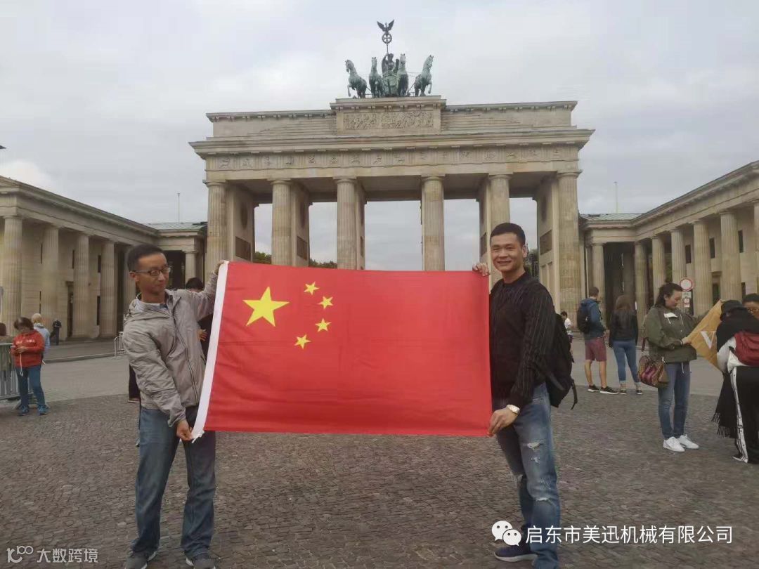 董事长与友人在勃兰登堡门展国旗留念