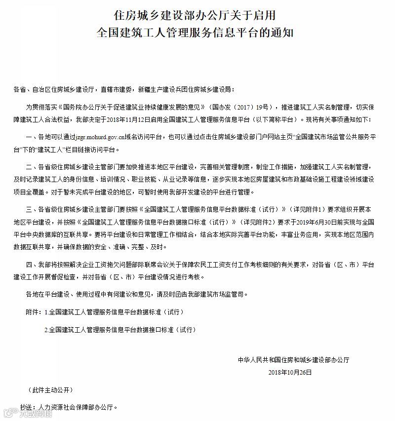 2018年5月9日,住建部颁布《建筑工人实名制管理办法》,旨在从根本上解决施工企业和建筑工人劳资双方的矛盾问题,解决农民工工资的拖欠问题。