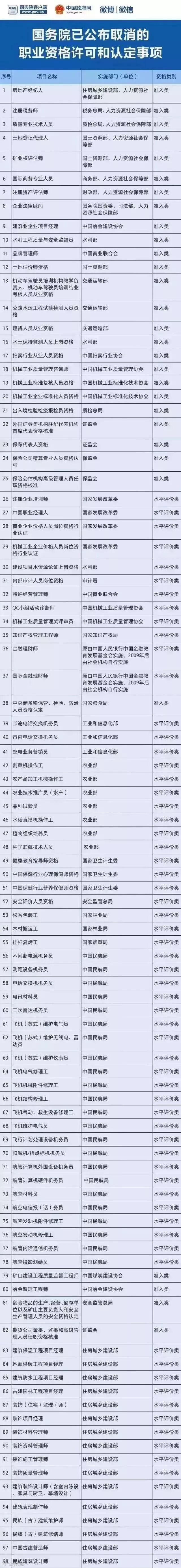 直至目前,国务院分7批取消了国务院部门职业资格许可和认定事项共400多项,其中专业技术人员职业资格154项、技能人员职业资格280项。