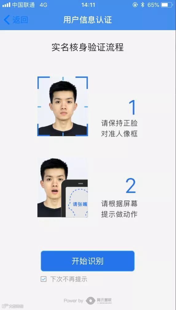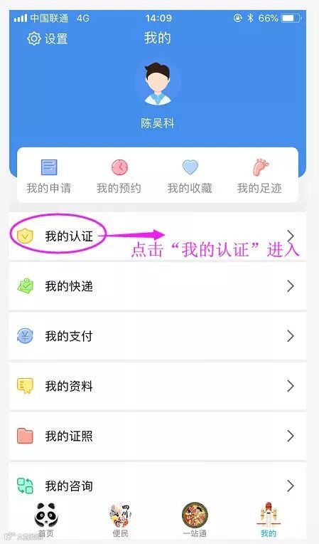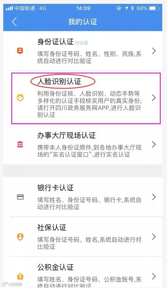 在“我的认证”界面,点击“人脸识别认证”进入。如下图:
