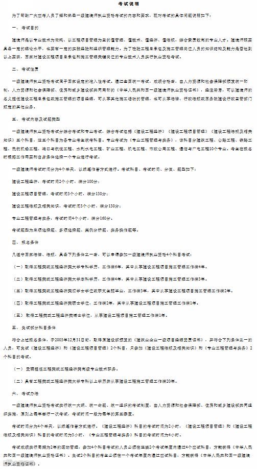 为了帮助广大应考人员了解和熟悉一级建造师执业资格考试的内容和要求,现对考试的具体问题说明如下: