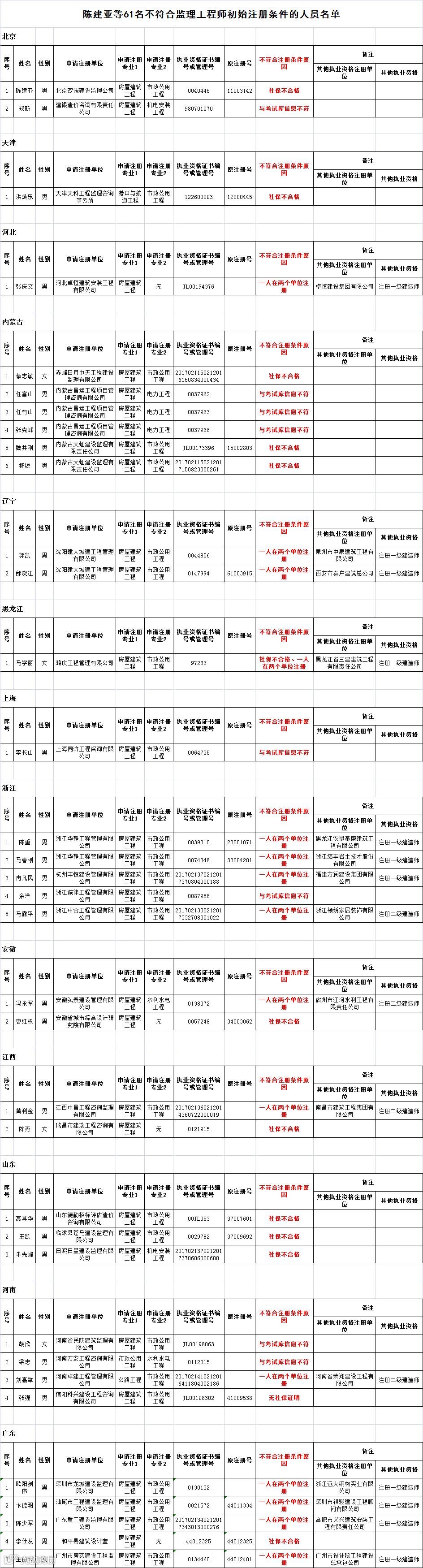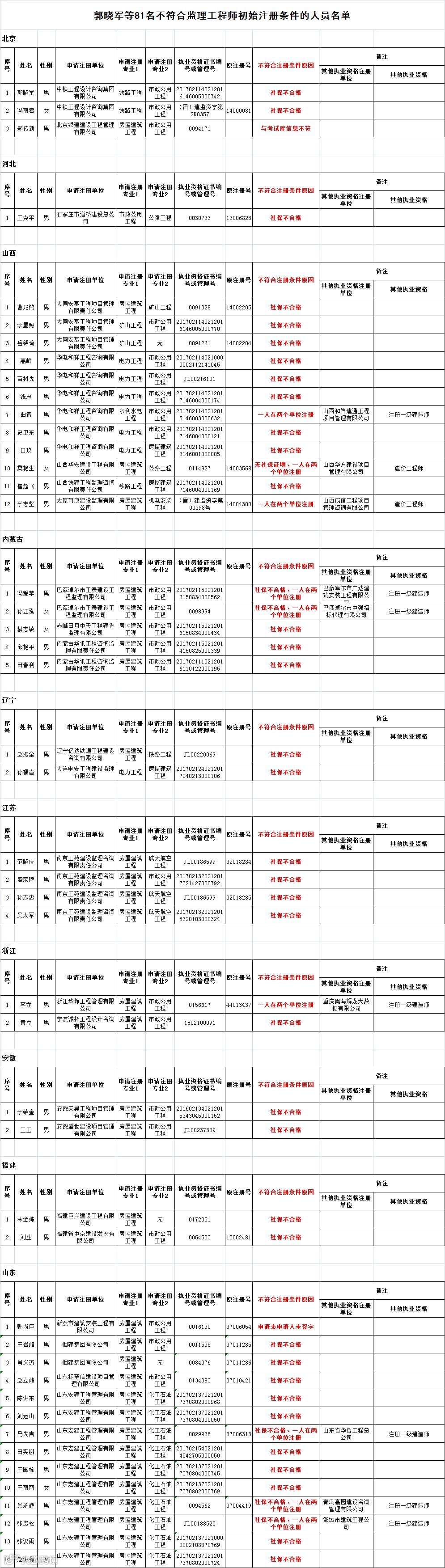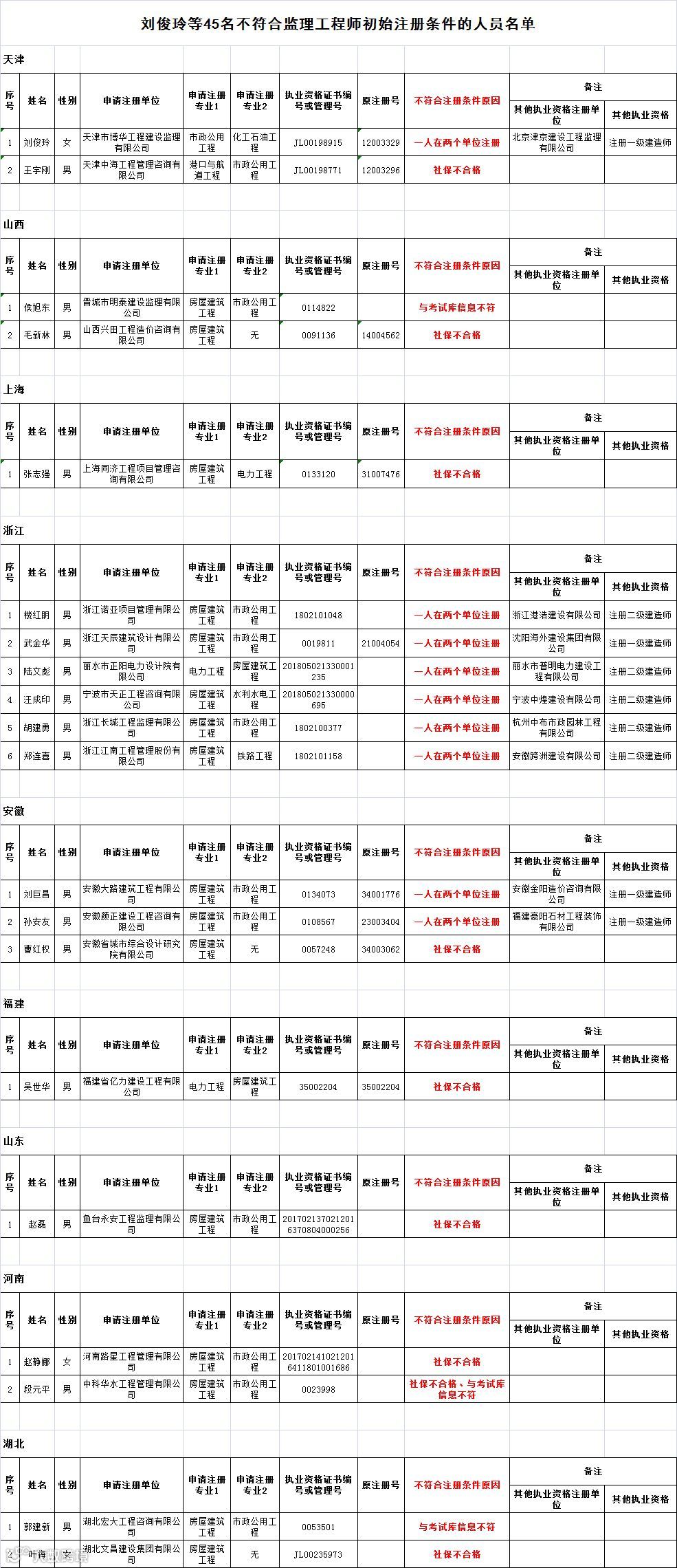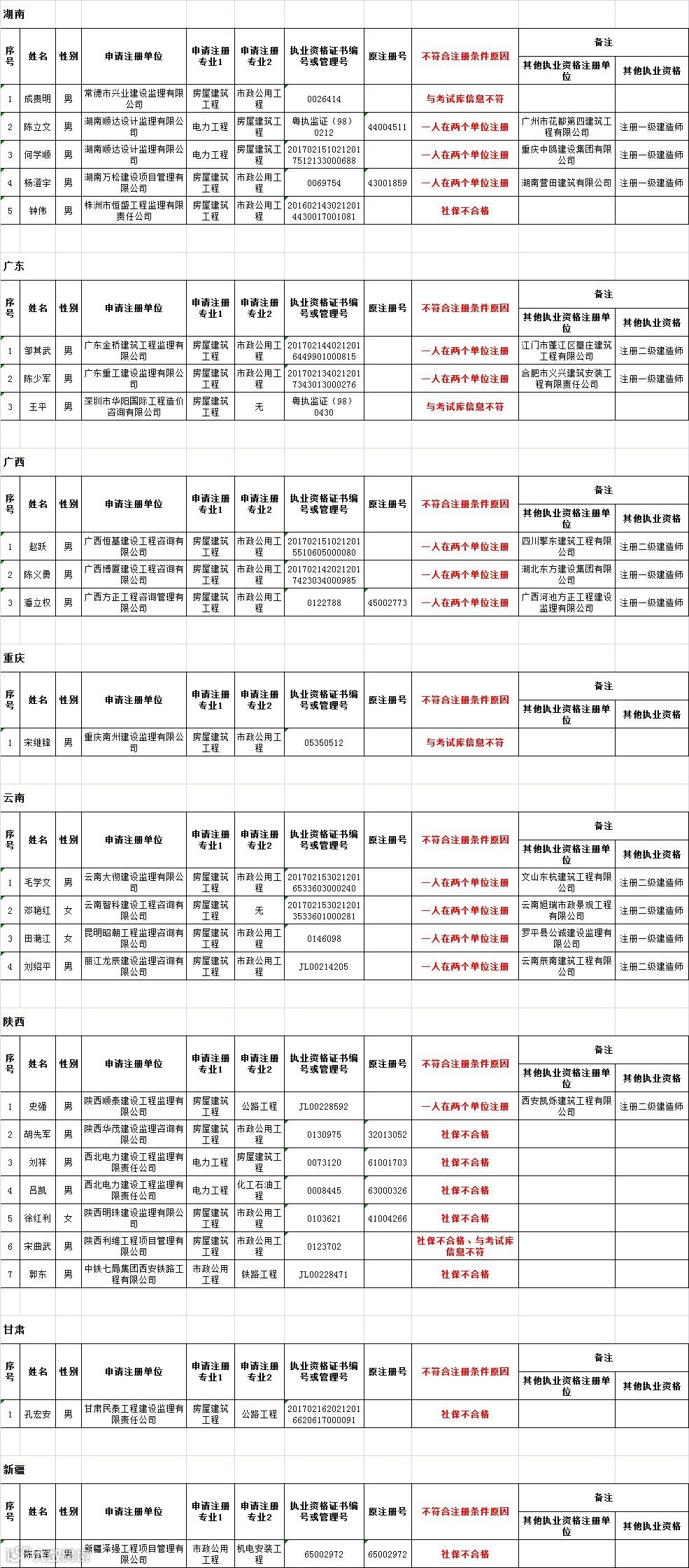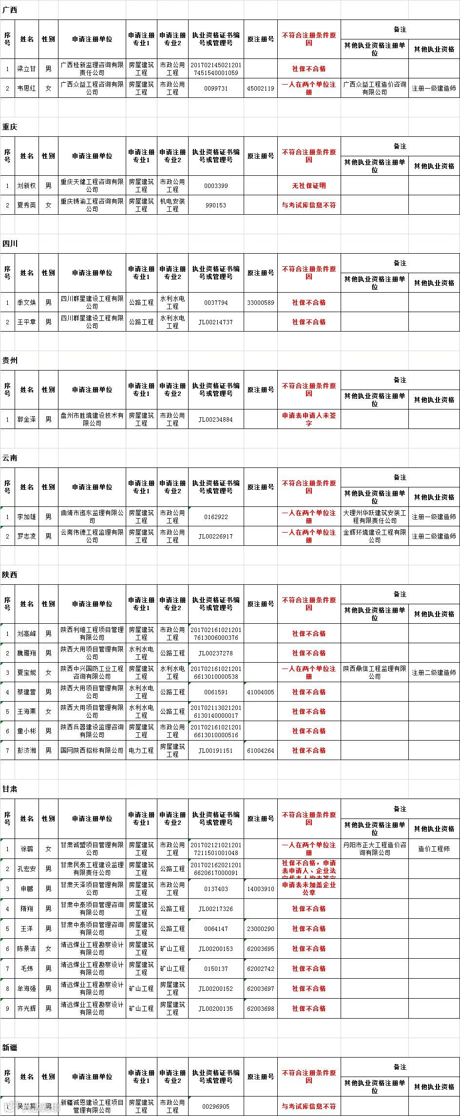 从不符合监理工程师初始注册名单中可以看出,大部分注册人员注册失败是因为“一人在两个单位注册”、“社保不合格”这两大原因。