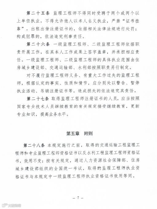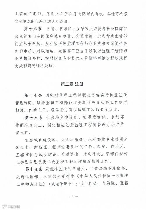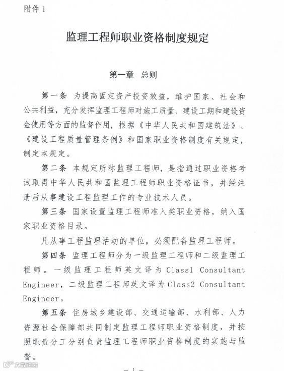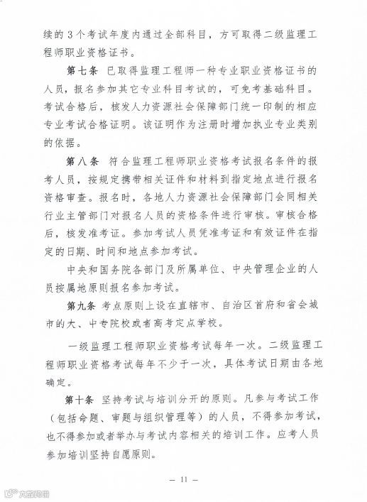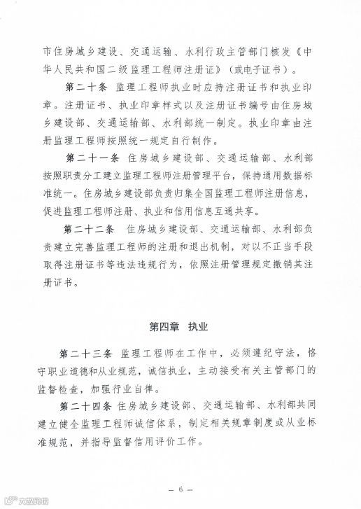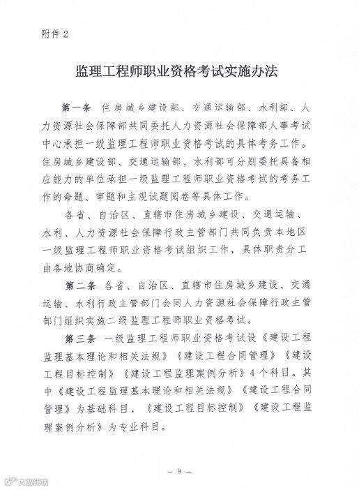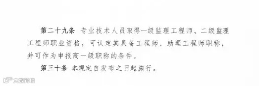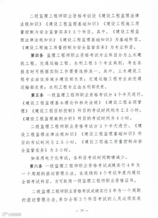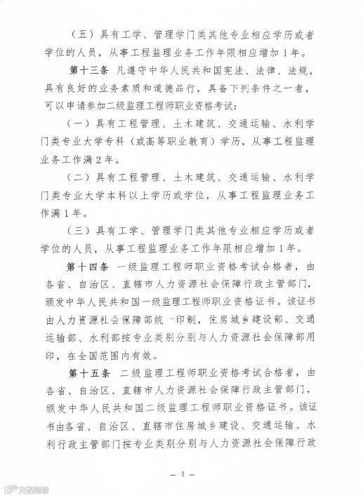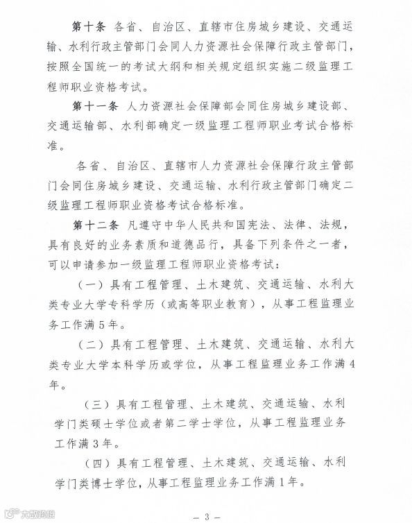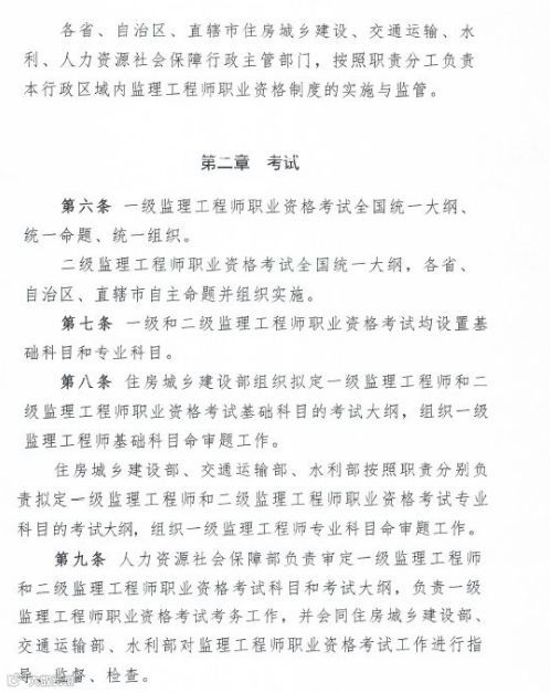 2、统一了原来水利部和交通部的监理工程师,设置土木建筑工程师、交通运输工程、水利工程三个专业类别;