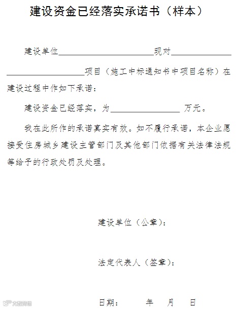 (五)增加建设资金已经落实承诺书(样本)(附后)。