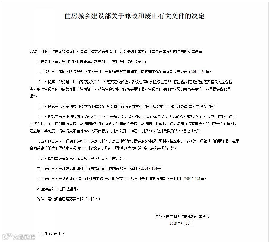 【原规定:各级住房城乡建设主管部门要加强对建设资金落实情况的审查,要求建设单位申请领取施工许可证时,提供银行出具的到位资金证明或保函,并提交截至申请之日无拖欠工程款情形的承诺书或其他证明材料。建设单位要确保建设资金落实到位,不得隐瞒有关情况或者提供虚假材料。】
