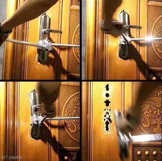 3.作案手法:现在市面上很多防盗门都是全自动锁,优点是锁门不用掏钥匙,门一关可直接锁门。可是缺点是在门里面把手下压可直接开门。所以小偷就利用防盗门的猫眼作案,将猫眼破坏后,将工具深入防盗门后施压门内把手,将门打开后入室盗窃。