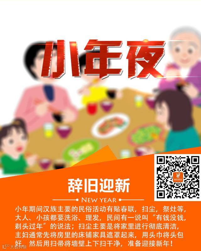 “小年”意味着人们开始准备年货,为家人买新衣,小年是整个春节的序曲,一过小年就感觉春节马上就要到来了,表示新年要有新气象,辞旧迎新、迎祥纳福的美好愿望!